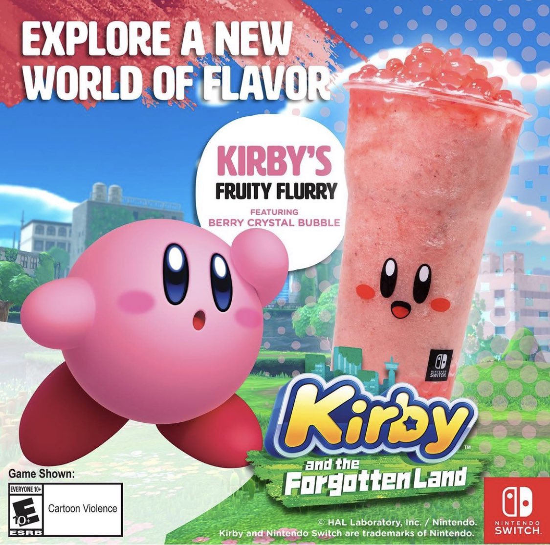 Have you ever wondered what Kirby tastes like? Well, now you can know with this crossover between Kirby and the Forgotten Land and Kung Fu Tea. This promotion has a special Kirby drink and bubble tea cups that feature Kirby’s face. The drink is a strawberry smoothie with pink boba that is sweet and refreshing, and it can be purchased at your local Kung Fu Tea.