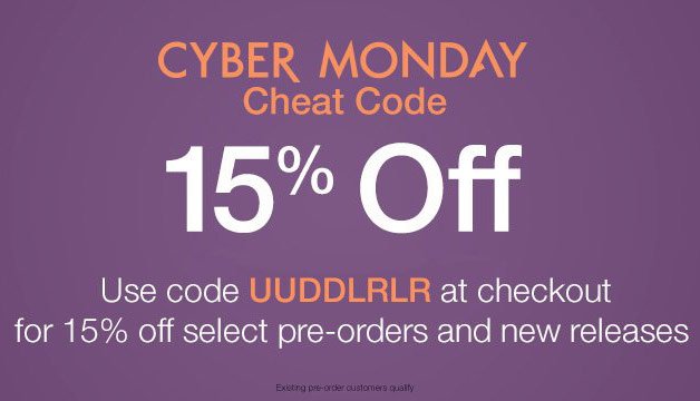 Amazon is celebrating Cyber Monday with a special sale. By entering a special code (pictured above), gamers can save 15 percent on select pre-orders and new releases.