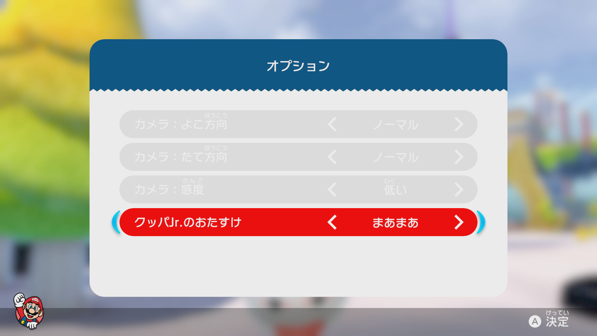 Aside from Bowser Jr. assistance, we’ll also mention that the screenshot above shows camera settings. There are options for horizontal, vertical, and sensitivity.