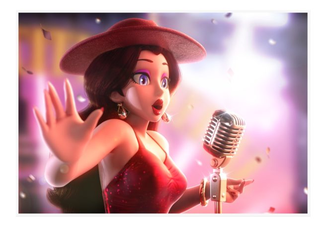 Mayor Pauline usually wears a pants suit. But when she is singing Jump Up, Super Star!, she wears a gorgeous dress which excites the usually cool New Donkers. Pauline is a character with history, so while keeping her original traits intact, Nintendo made a new design for her which fits the world setting of Super Mario Odyssey. The team solidified her image by drawing rough sketches of her various costumes, although they don’t appear in the game.