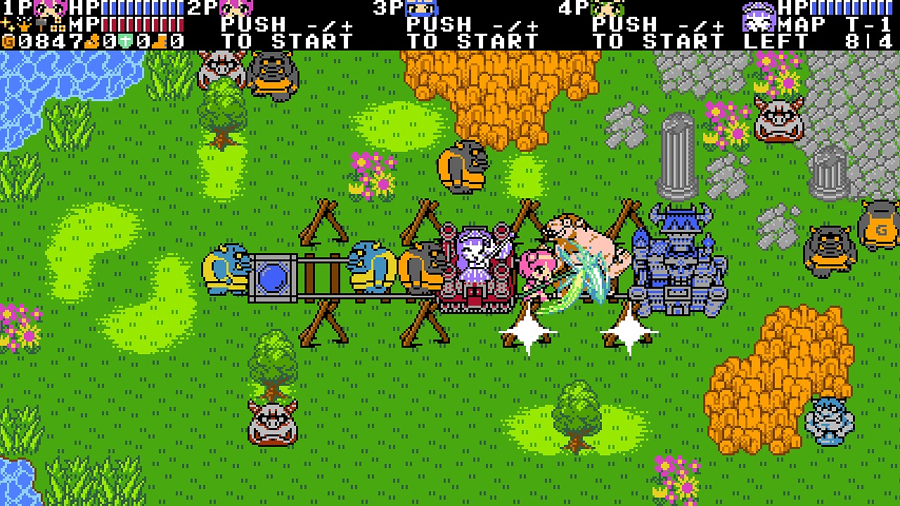 Susume!! Mamotte Knight: Hime no Totsugeki Serenade is an offline and online multiplayer-supported game where players control the “Mamotte Knight” to protect the princess from incoming enemies. A new element has also been added where the castle moves along a track, and when the castle arrives at track checkpoints, a large wave of enemies and bosses attack. When you arrive at the enemy’s castle waiting at the end of the track, you must ram the enemy’s castle with your own castle to destroy it and clear the game.