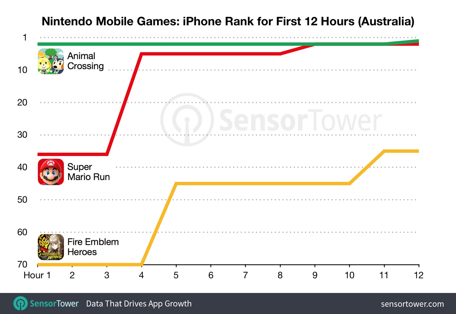 Sensor Tower reports that the new Animal Crossing title for mobile reached the top spot among all iPhone apps faster than Super Mario Run and Fire Emblem Heroes. It did so within 12 hours of its debut.