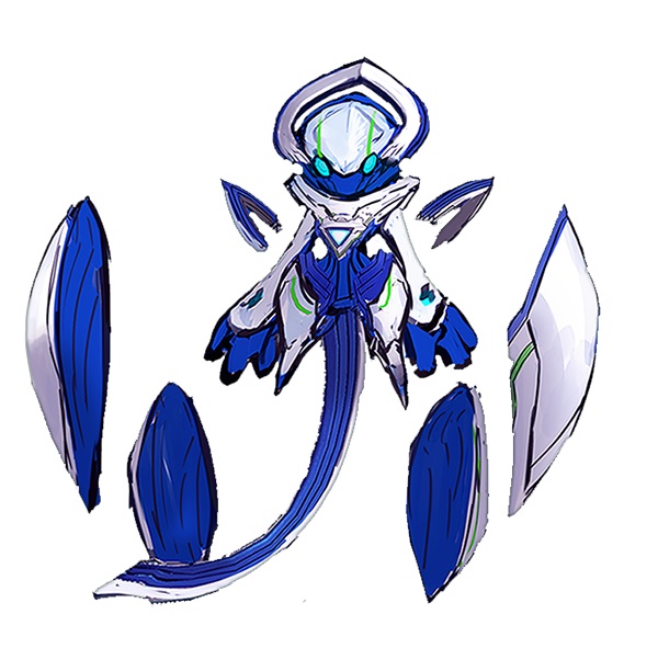 The graceful Arrow Legion hovers in the air without a sound and strikes and enemies from long range. It was originally conceived as a stealthy Legion specialized for infiltration missions. Its giant, bowlike weapon is a major part of its unique silhouette, and I imagined it bullseyeing wave after wave of enemies as I designed it. Its floating parts move with the angle of the bow, to avoid interference with the ground.