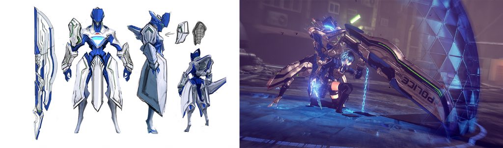 The first of the Legions I’ll be introducing today – the Sword Legion, the first one you’ll control at the start of ASTRAL CHAIN – was also designed by Katsura. Here’s his original design: