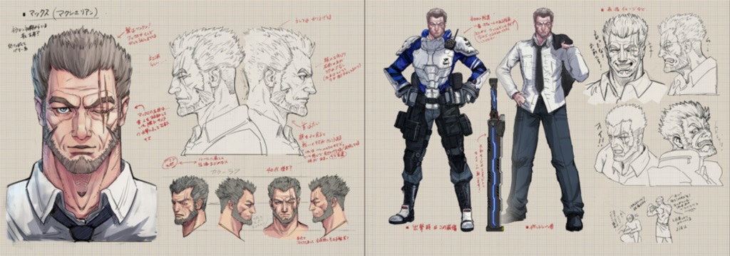 Oh, but first, I can’t talk about Legion designs without mentioning Masakazu Katsura! You’ve probably read this elsewhere already, but he’s the artist behind beloved manga like Tiger & Bunny and Zetman, and he designed the main characters of ASTRAL CHAIN! I’ve got to admit that when I heard he would be involved with the project, I could hardly believe it! I’ve been a huge fan of Katsura’s heroic designs for a long time, and now I’d get to work with them hands-on!