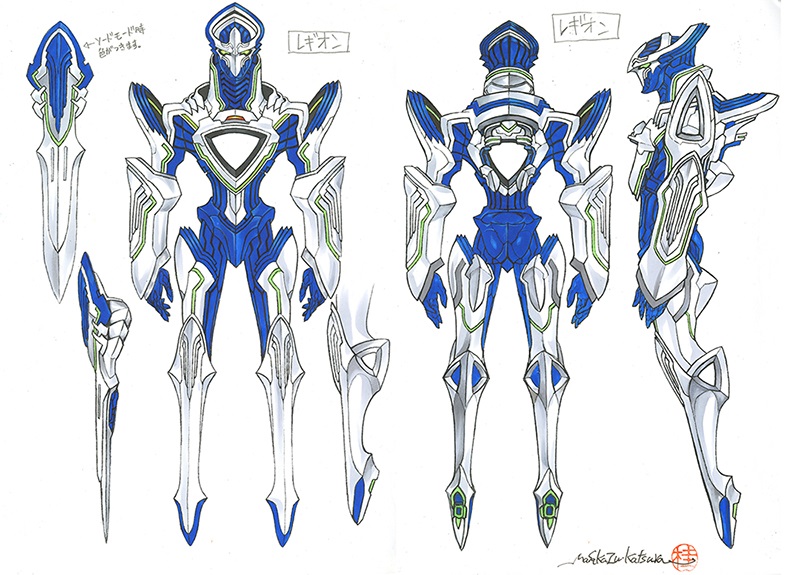 K: I’m of the Ultraman generation so I wanted to see if I could do my version of the Eye Slugger (a throwing blade attached to Ultraman character Ultraseven’s head). I think attaching the right and left parts of the head to make that open space was pretty novel. They also asked if we could open up the chest as well. I thought that sounded pretty cool so I just drew something on the spot (laughs). (To Taura) So, when exactly did you come up with the idea of Legions? The game’s initial concept was supposed to be about catching monsters to fight against other monsters, right?