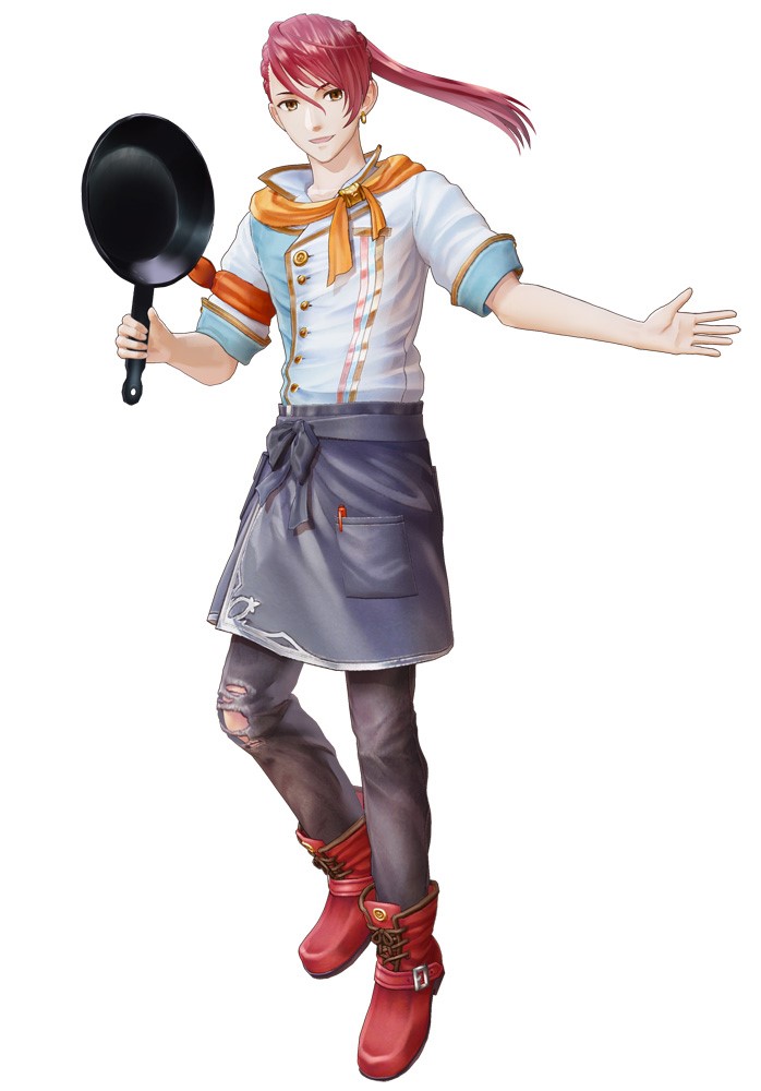– Pays particular attention to his hair style and clothes, but always wears his apron as a symbol of his chef pride