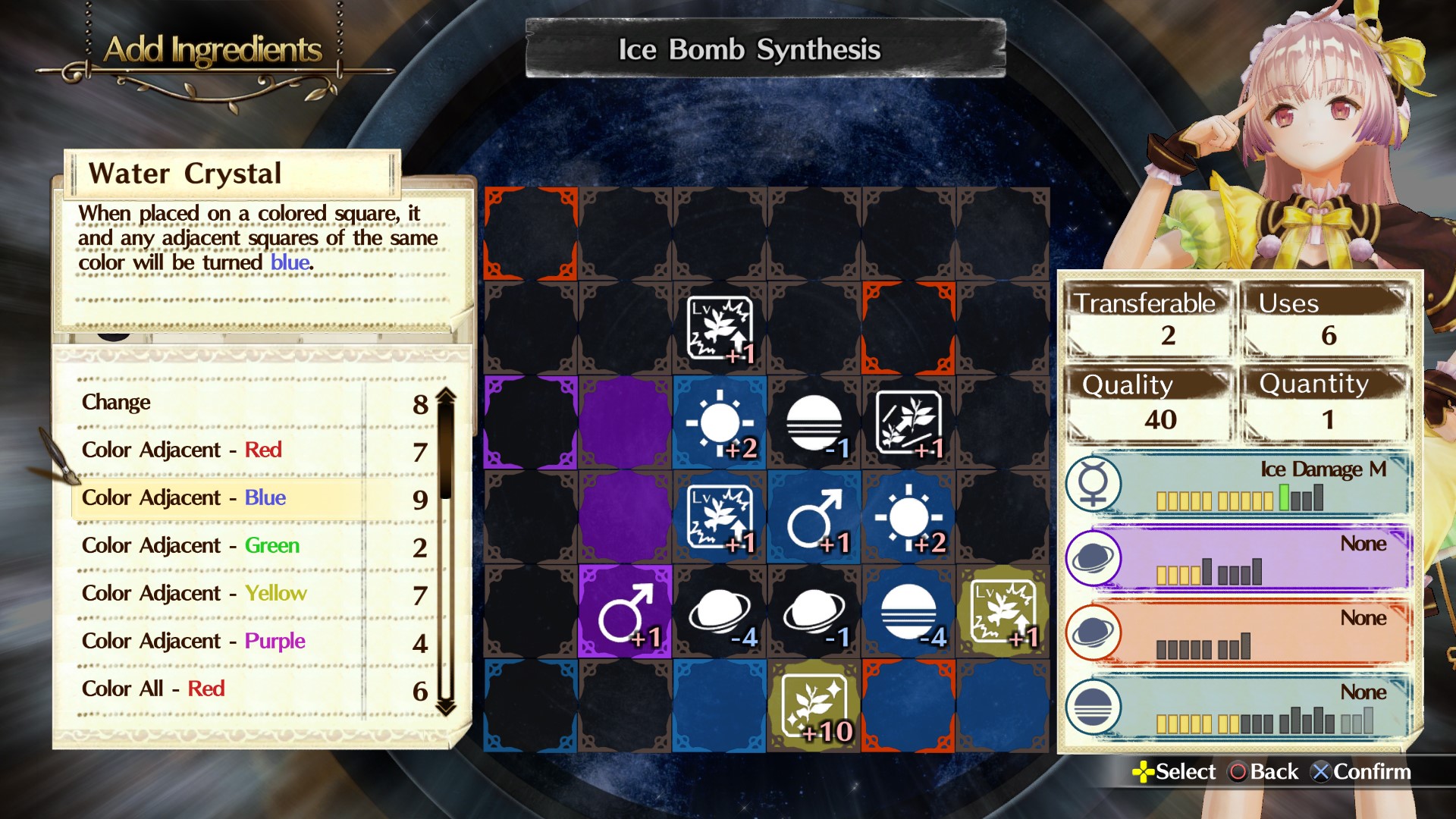 Throughout their adventures in Atelier Lydie & Suelle: The Alchemists and the Mysterious Paintings, the twins will find a bounty of resources which will be needed to create incredibly useful items. Synthesizing items is a necessity for the twins to perfect their skills, as they train to run the best atelier in the country. The Synthesis system has been tweaked with the addition of Enhancing Agents, making the learning process easier for aspiring alchemists. The newly introduced Enhancing Agents attach new effects onto synthesized items and, depending on the agent used, will change the synthesis panel in unique ways.