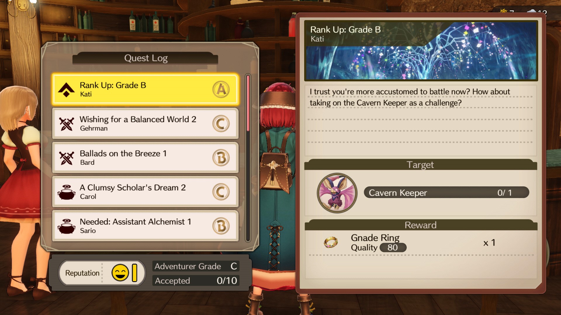 As Sophie progresses through her journey in Atelier Sophie 2, scenarios will unlock for a variety of characters in Erde Wiege. Through these events, players will be able to learn of each character’s goals and dreams, as well as raise their friendship level with the character – leading to new skills being unlocked. Each character has their own unique scenarios: Alette dreams of getting rich quickly so she asks Sophie to help her learn alchemy, whereas Ramizel feels like she isn’t able to live up to everyone’s high expectations. Can Sophie help Ramizel find the success she’s looking for?