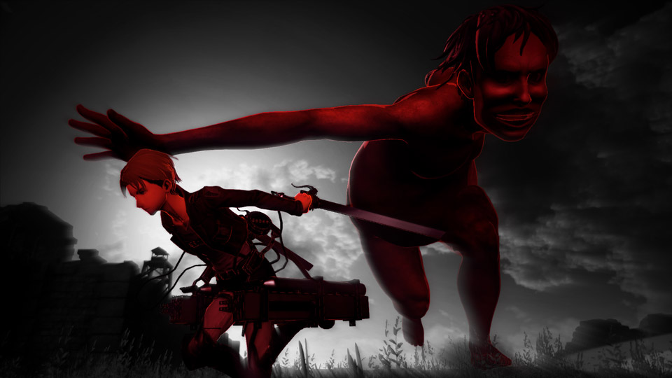 Use of the omni-directional mobility gear allows to fly freely around the battlefield. Maneuvering with ODM is essential to taking down Titans. To defeat a Titan, their weak point – the nape is the target, behind the neck. Severing limbs such as arms or legs will make it easier to attack the nape.
