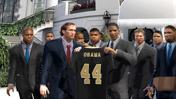 Why should you care? Because you’re a massive fan of American football who apparently didn’t get enough of a sports fix with the last billion releases of Madden. That doesn’t apply to you? In that case, it’s probably best to skip this entry. Anyway, even if it doesn’t interest you in the slightest, Madden 11 is going to sell tonnes of copies (at least in the US) when it releases for every current-gen console, and even some last-gen ones. PS2 owners, rejoice! Expect the same Madden you either did or didn’t play last year, but with updated graphics, player rosters and a few minor gameplay tweaks. To me at least, the most interesting feature is that apparently after winning the Super Bowl your team gets to travel to Washington D.C. and shake hands with President Obama (pictured above). And that just goes to show how much I care about football.