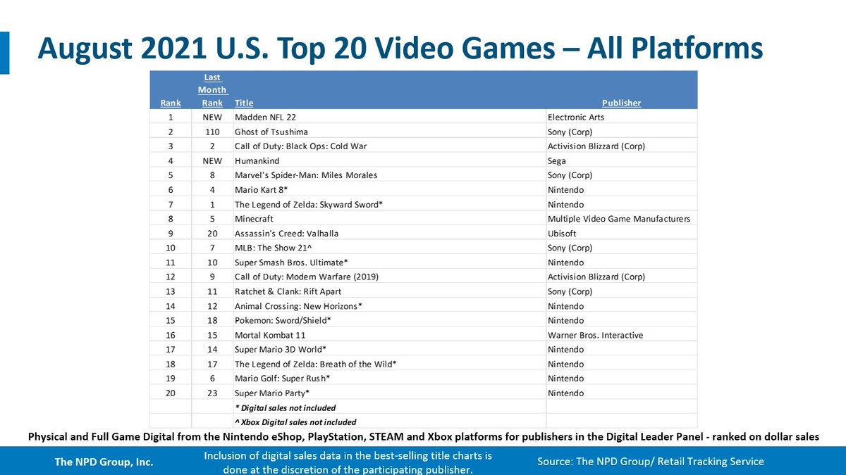 August 2021 NPD: top 20 best-selling games in the U.S.
