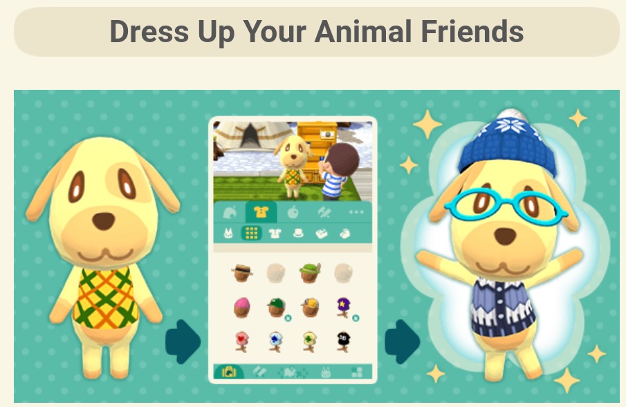 – Customize the look of your animal friends, but not all clothing options are available to all animals