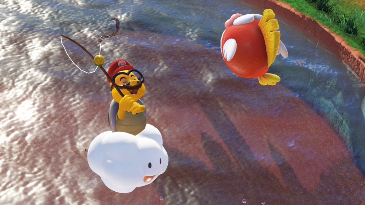 The Super Mario Odyssey Japanese Twitter has shown off Mario fishing in a Lakitu body. Just another little adorable update from the Twitter.