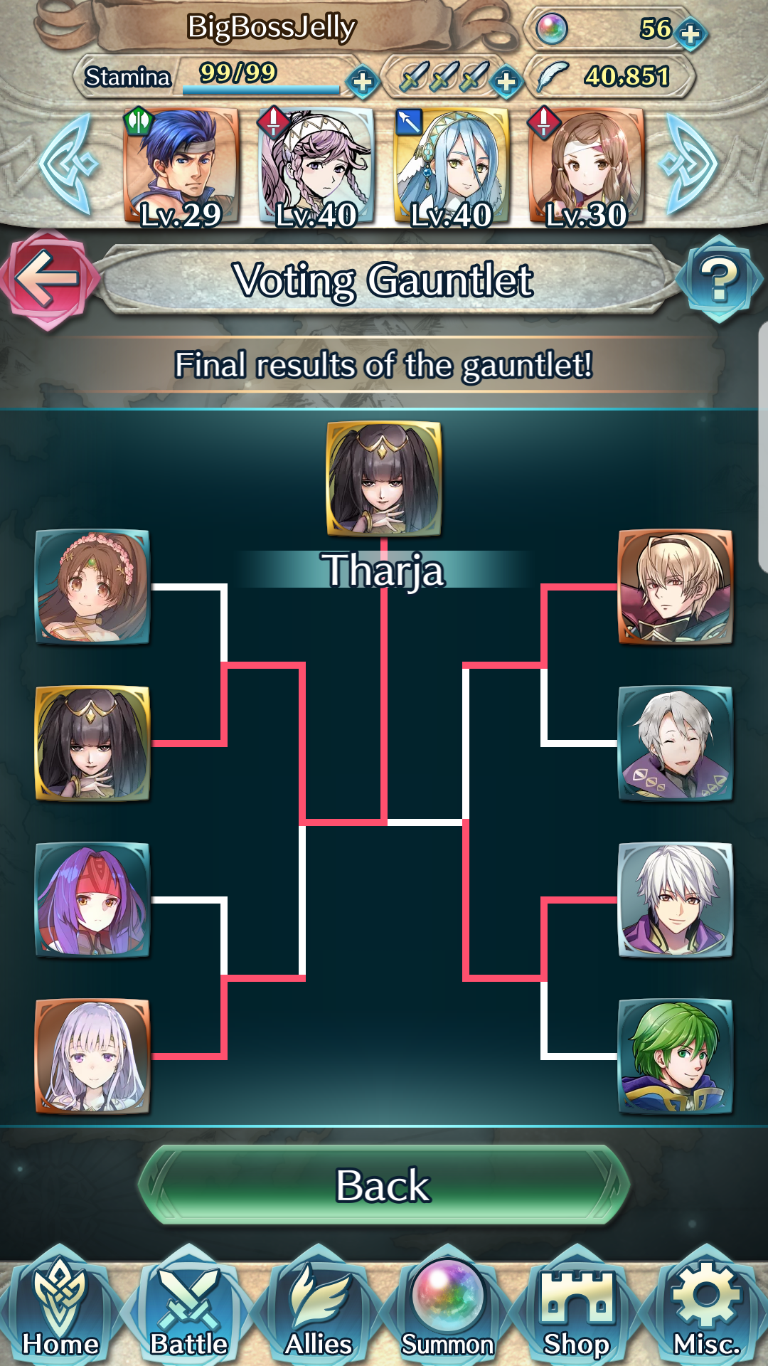 Tharja has overtaken Robin in the most recent Voting Gauntlet. Players can now log into Fire Emblem Heroes and collect heroes feathers based on if their team won and their own personal rank.
