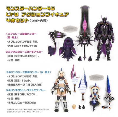 Here’s a look at the items included with the limited edition set of Monster Hunter 4 Ultimate in Japan. The set is exclusive to Capcom’s online store. It comes with four action figures and one of three different mini-mascot plushies. Check the images out below!