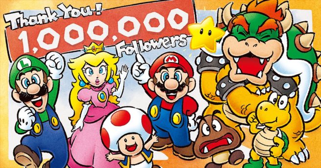 Today, Nintendo reached one million followers on its Japanese account. It released a piece of art, which you can see in either the post below or the featured image above.