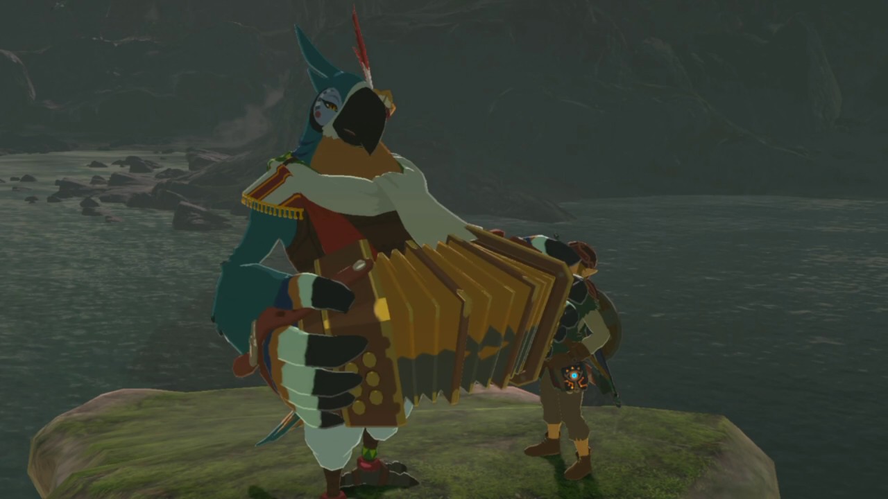 Today’s item distribution is themed after Kass. The director of the game, Hidemaro Fujibayashi, opens with a special tip about Kass’s songs: “[After talking to him once during the Champions’ Ballad DLC pack 2,] I advise you to take a moment and talk to Kass a second time for a special performance.” Apparently, if you leave the area without talking to him a second time, you lose out on the ability to hear this special performance.