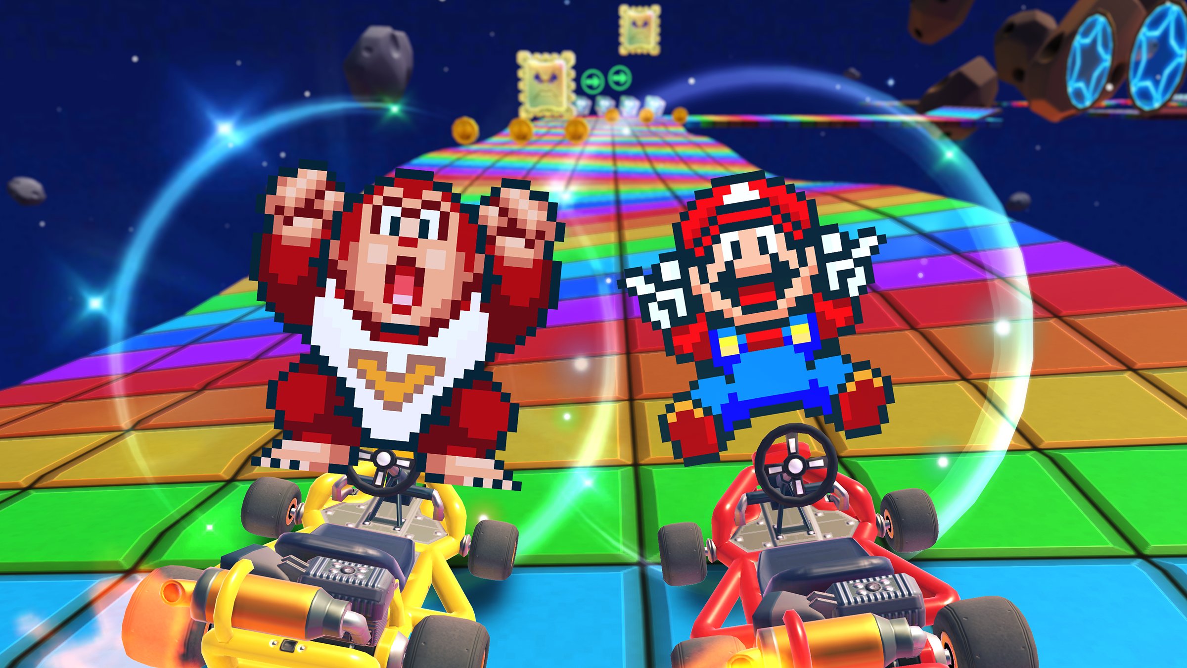 Starting Sep 8, 11 PM PT, get ready for some nostalgia with Mario (SNES) and Donkey Kong Jr. (SNES) in the Super Mario Kart Tour. Players can enjoy the past with these special 16-bit style racers that pay homage to the very first Mario Kart title on SNES. Check out the trailer below to see them in action: