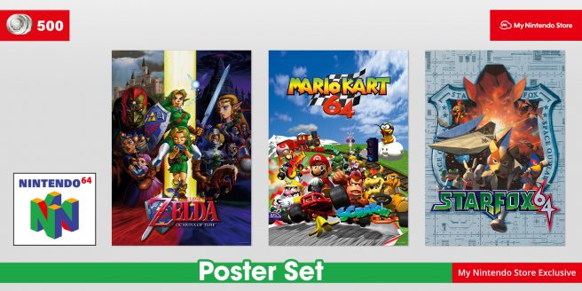 My Nintendo members in Europe can now purchase a set of posters showing off several Nintendo 64 classics with their Platinum Points. The set includes 3 posters, one of The Legend of Zelda: Ocarina of Time, one for Mario Kart 64, and lastly a poster featuring Starfox 64. Here are the full details: