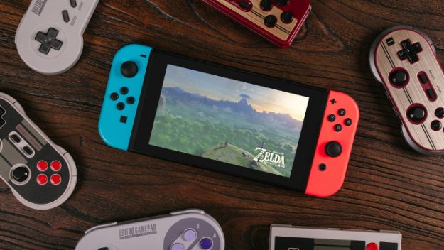The retro-style controller company 8Bitdo has launched a firmware update for their wireless controllers that makes them compatible with Switch. So now we can buy a wireless SNES controller from them and use it to play Ultra Street Fighter II, for example.