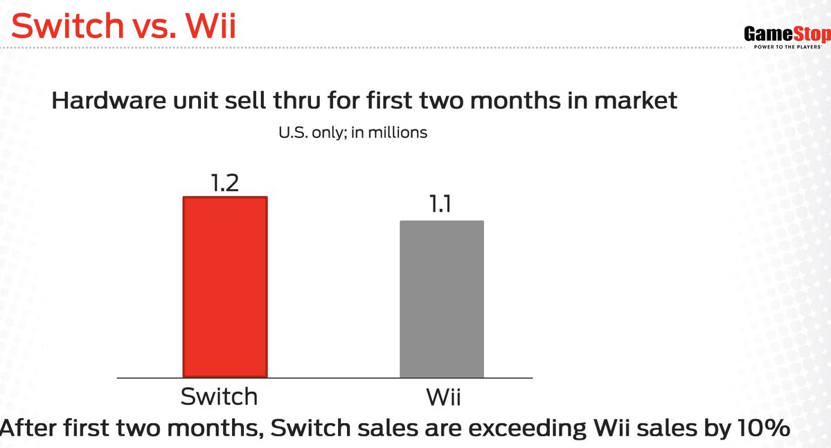 GameStop: Switch sales exceeding Wii sales in same timeframe, strong first quarter results helped by Switch launch