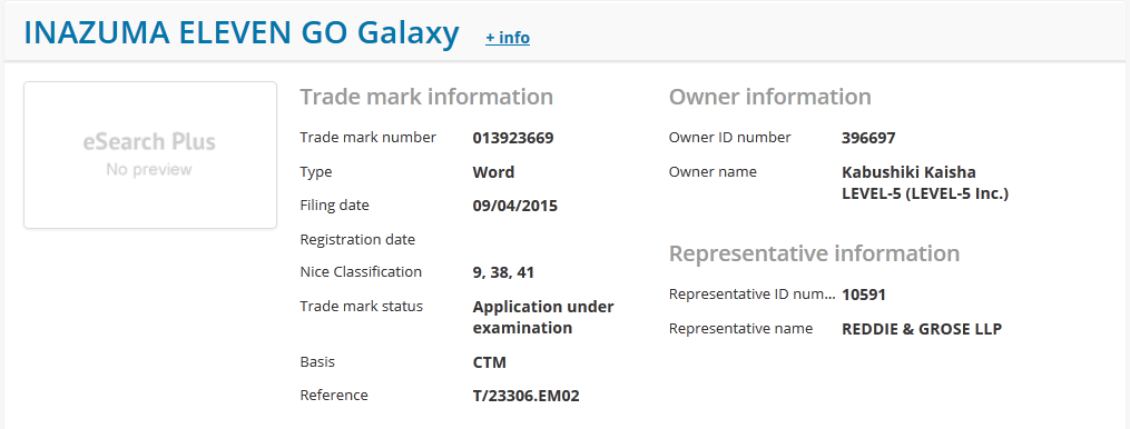 Level-5 files trademark for “INAZUMA ELEVEN GO Galaxy” in Europe