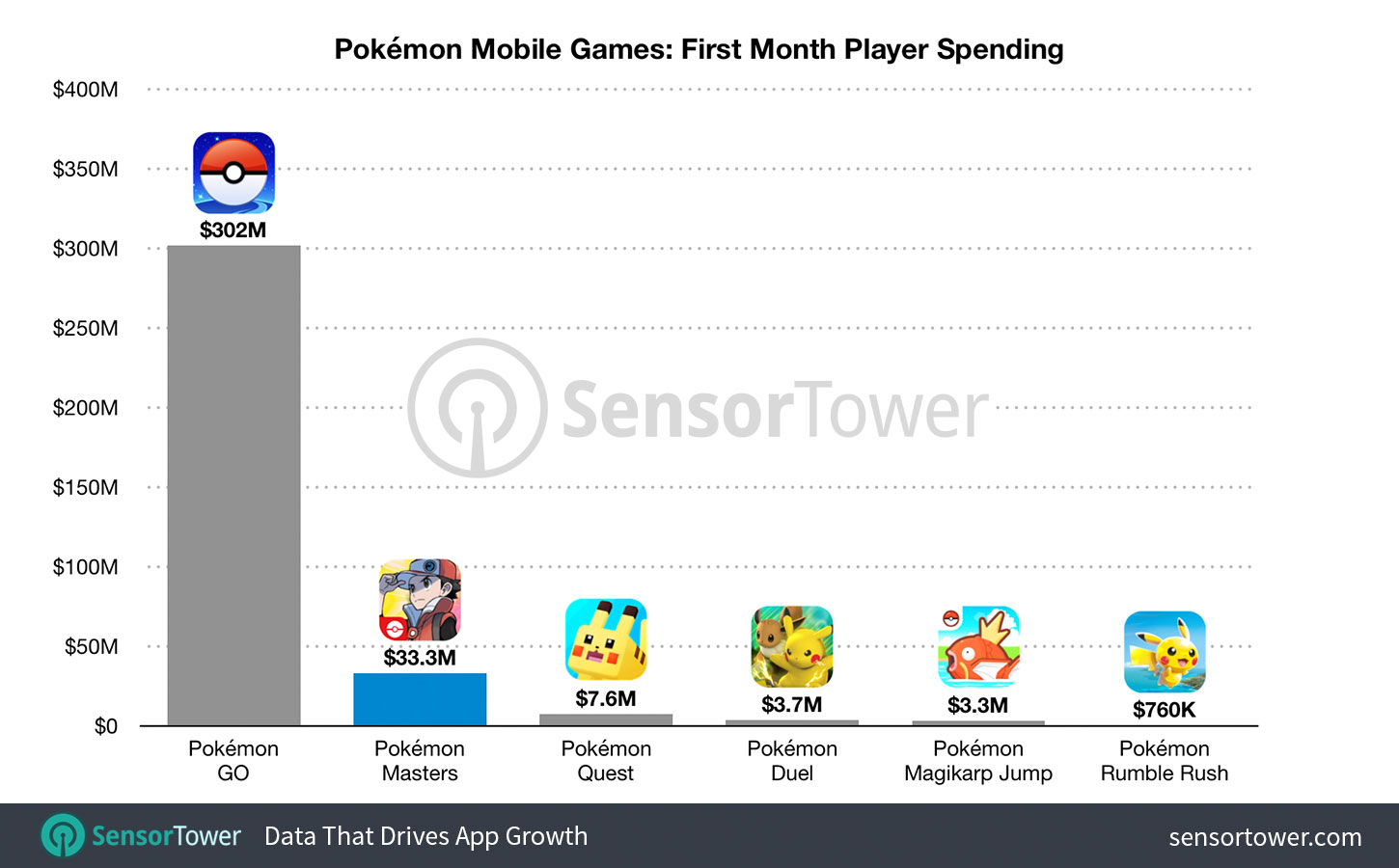 While this is certainly a good result, it doesn’t compare to Pokemon GO, which earned $302 million in its first month. Nonetheless, Pokemon Masters outperformed all other Pokemon mobile games in their first month, such as Pokemon Quest, Pokemon Duel or Magikarp Jump. You can see the full results on SensorTower here.
