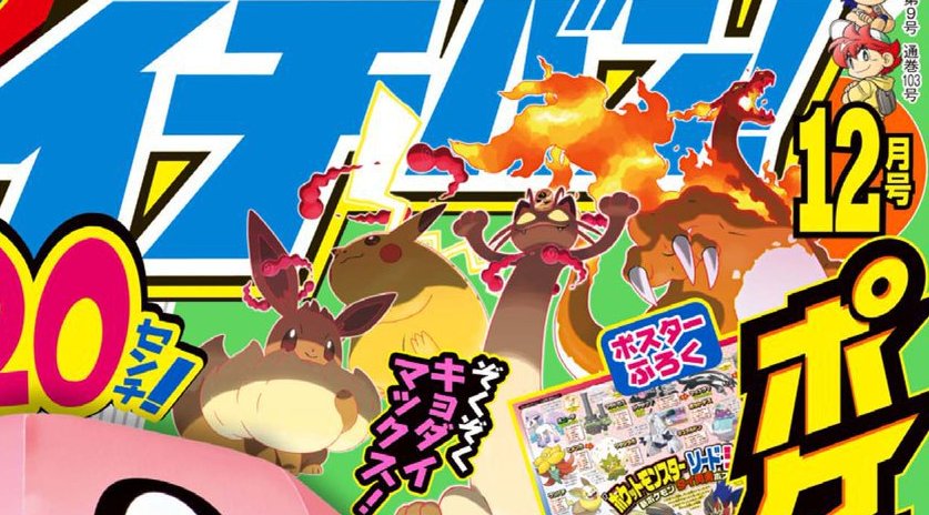 It appears that the Gigantamax versions of Meowth, Charizard, Eevee, and Pikachu have all been confirmed from an image leak of the latest CoroCoro Ichiban cover.