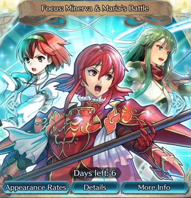 A new summoning focus and Bound Hero Battle are now available in Fire Emblem Heroes. The summoning focus is called “Minerva and Maria’s Battle” and it features 5 star versions of Palla, Minerva, and Maria.