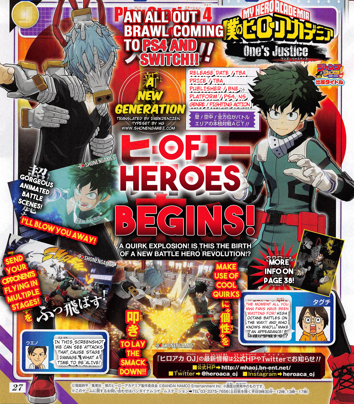 Original: Weekly Shonen Jump’s latest issue has revealed that a new battle action game from Bandai Namco titled “My Hero Academia: One’s Justice” is coming to the Switch and PlayStation 4.