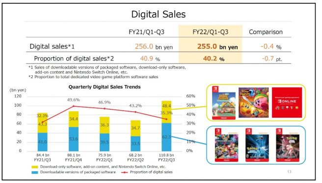 In its financial results explanatory material for the third quarter of fiscal year ending March 2022, Nintendo shared the latest on its digital sales.