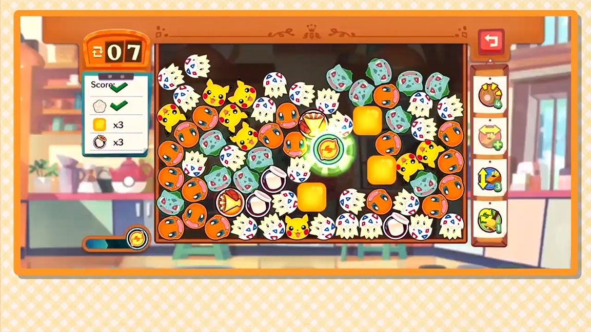 In the title, you’re the owner of a cafe that Pokemon visit. Fulfill their orders by taking on puzzles. You’ll also link icons by swirling them around.