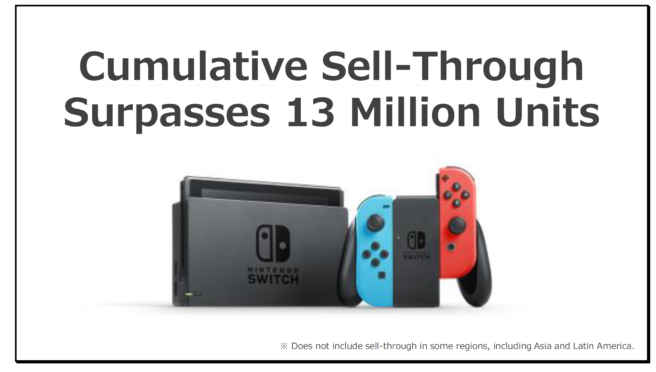We were able to offer multiple hit titles early on for Nintendo Switch that serve as powerful drivers for hardware sales. These kinds of titles can broaden the user base for the hardware and help sustain hardware sales. I mentioned the sales numbers for these different titles, but the release of multiple hit titles at the time of the launch of new hardware has significance beyond the mere fact that certain numbers of units were sold for individual titles.