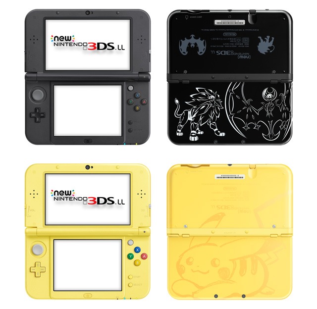 Original (6/14): A pair of New 3DS XL units are on the way to Japan. One model is black and features Solgaleo and Lunala while the other is yellow and has Pikachu on the front. Each model comes out on November 18 and costs 18,800 yen.