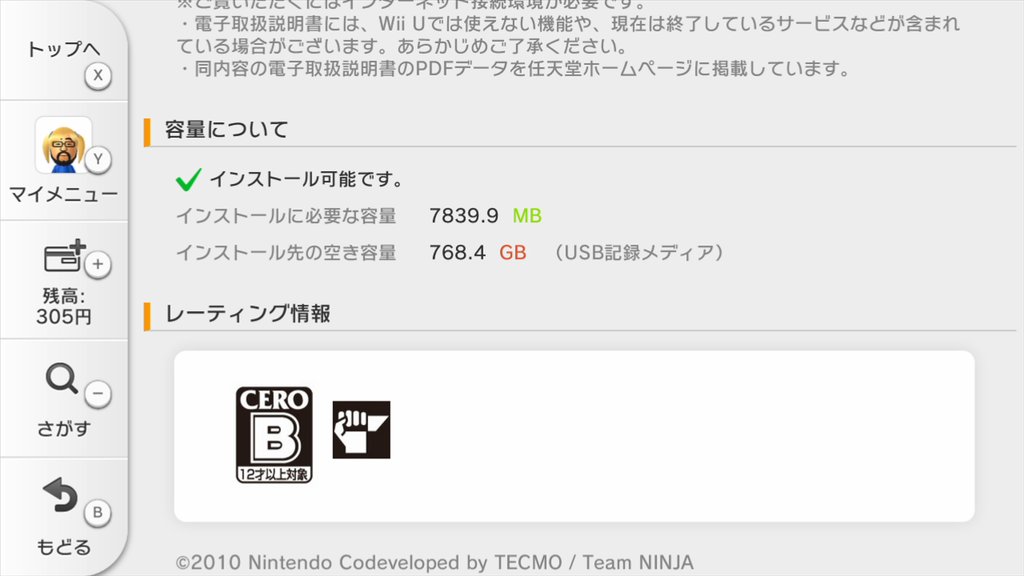 Metroid: Other M Wii U file size (Wii download)