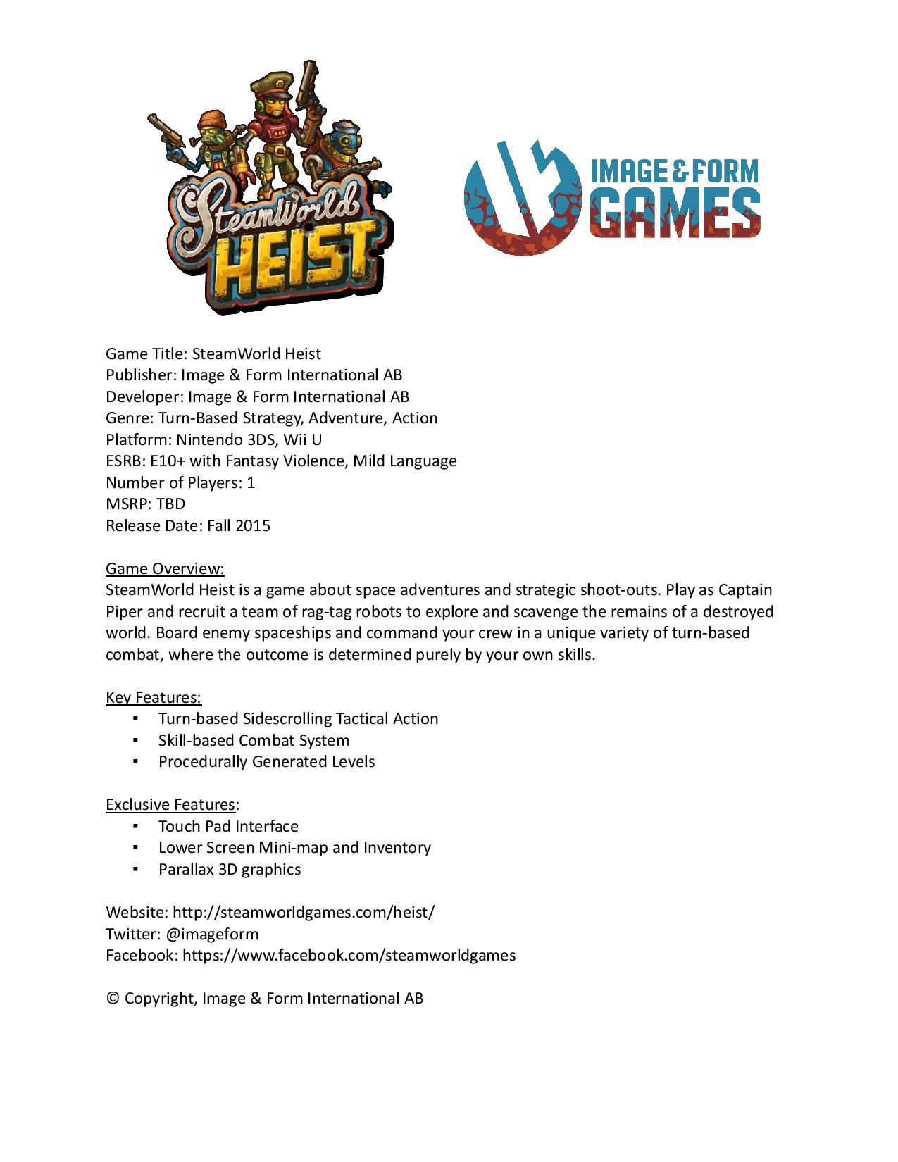 – SteamWorld Heist from Image & Form International AB