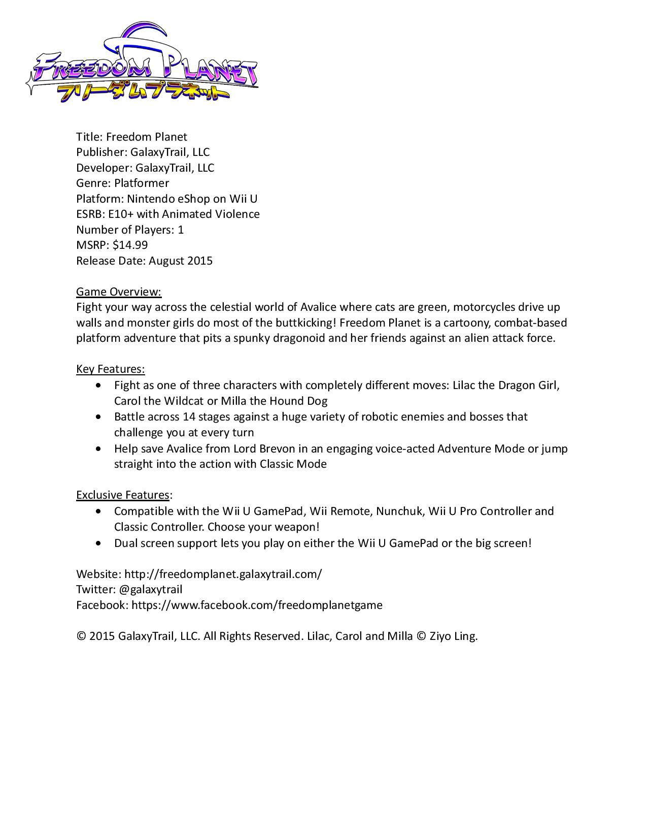 – Freedom Planet from GalaxyTrail, LLC