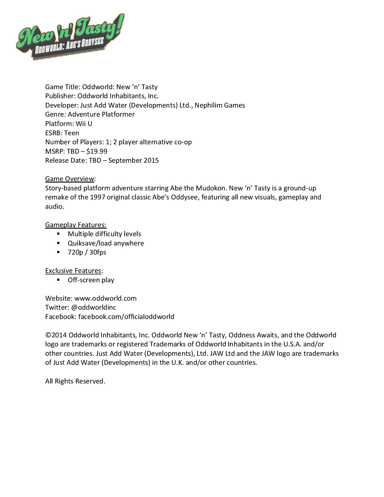 – Oddworld: New ‘n’ Tasty from Oddworld Inhabitants, Inc.