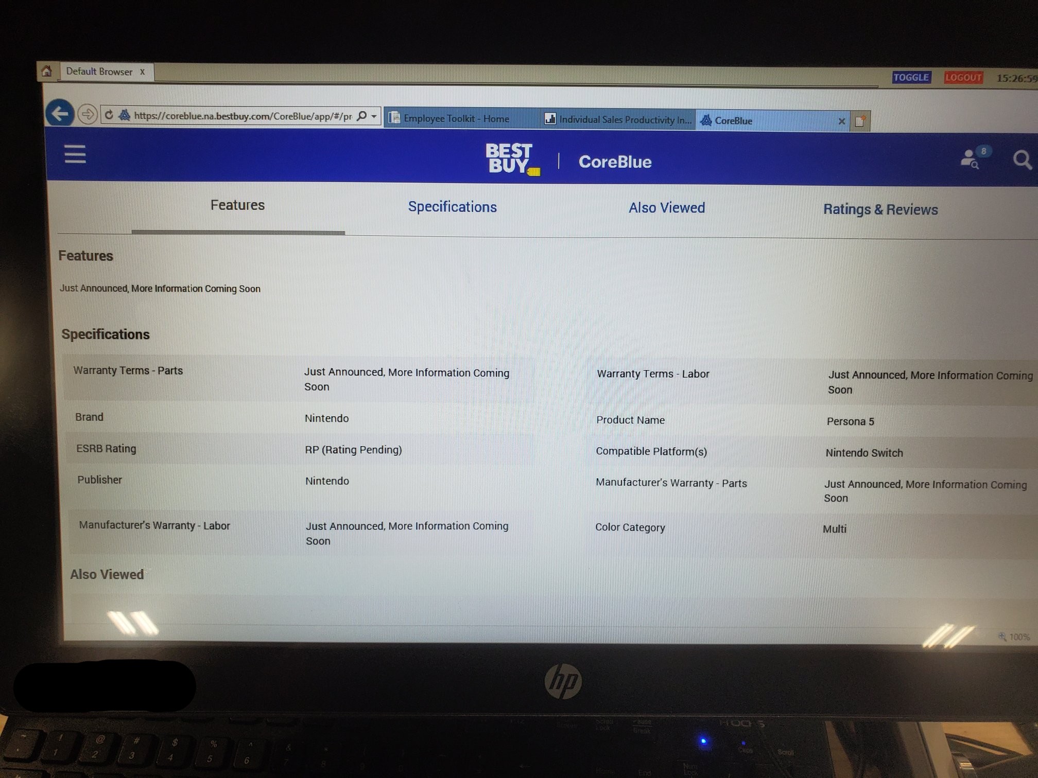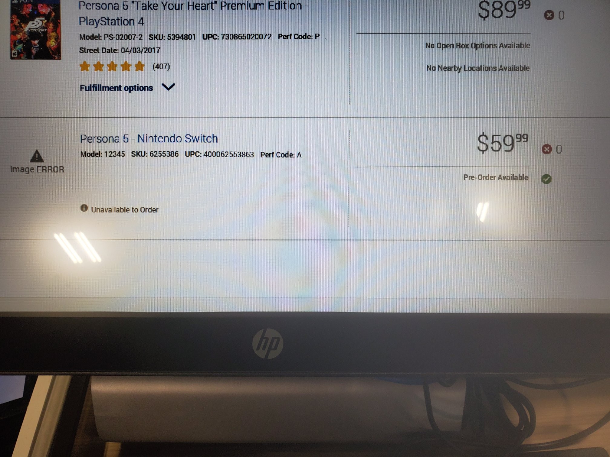 Today, Reddit user groo0731 shared some photos online from Best Buy’s internal system. That system lists Persona 5 for Switch, but it’s not live on the site itself.