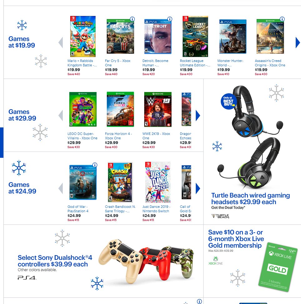 Attempting to contend with other retailers such as Walmart and target, many of the same deals found there for Black Friday are also being offered at Best Buy — including both the $299.99 Mario Kart 8 Switch console bundle and the $79.99 Super Mario Maker Edition Nintendo 2DS. In addition, fans will be able to save $40 on the Starlink Starter Pack, as well as 20% off on all Starlink accessories. Various Switch PowerA controllers and accessories will also be discounted by up to 40%.