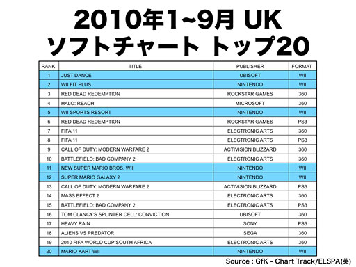 Best-selling games in the U.S., other regions for 2010, hardware sales in Europe, top 20 sales in the U.S. this gen