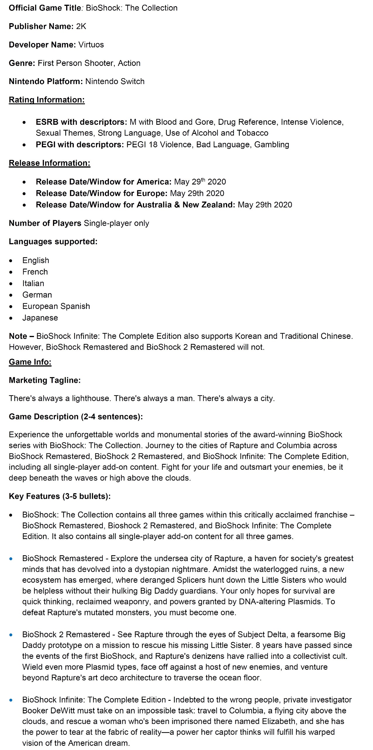 2K Games has shared new assets for BioShock: The Collection. We have the official boxart above, and the fact sheet/screenshots below.