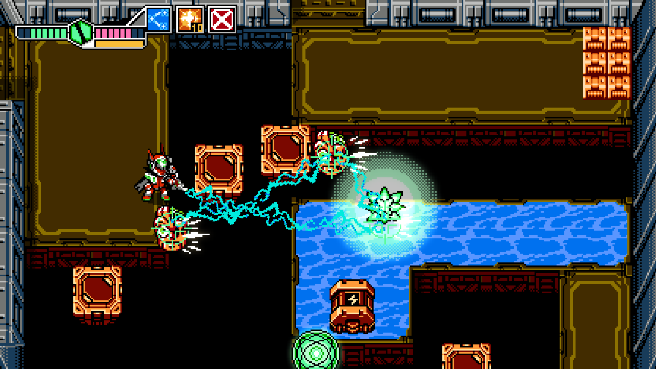 Sophia’s cutting-edge anti-mutant robot soldiers are waiting inside the bases to to ambush Jason. If he enters unprepared, he can easily take more damage than the shields he picks up can handle!