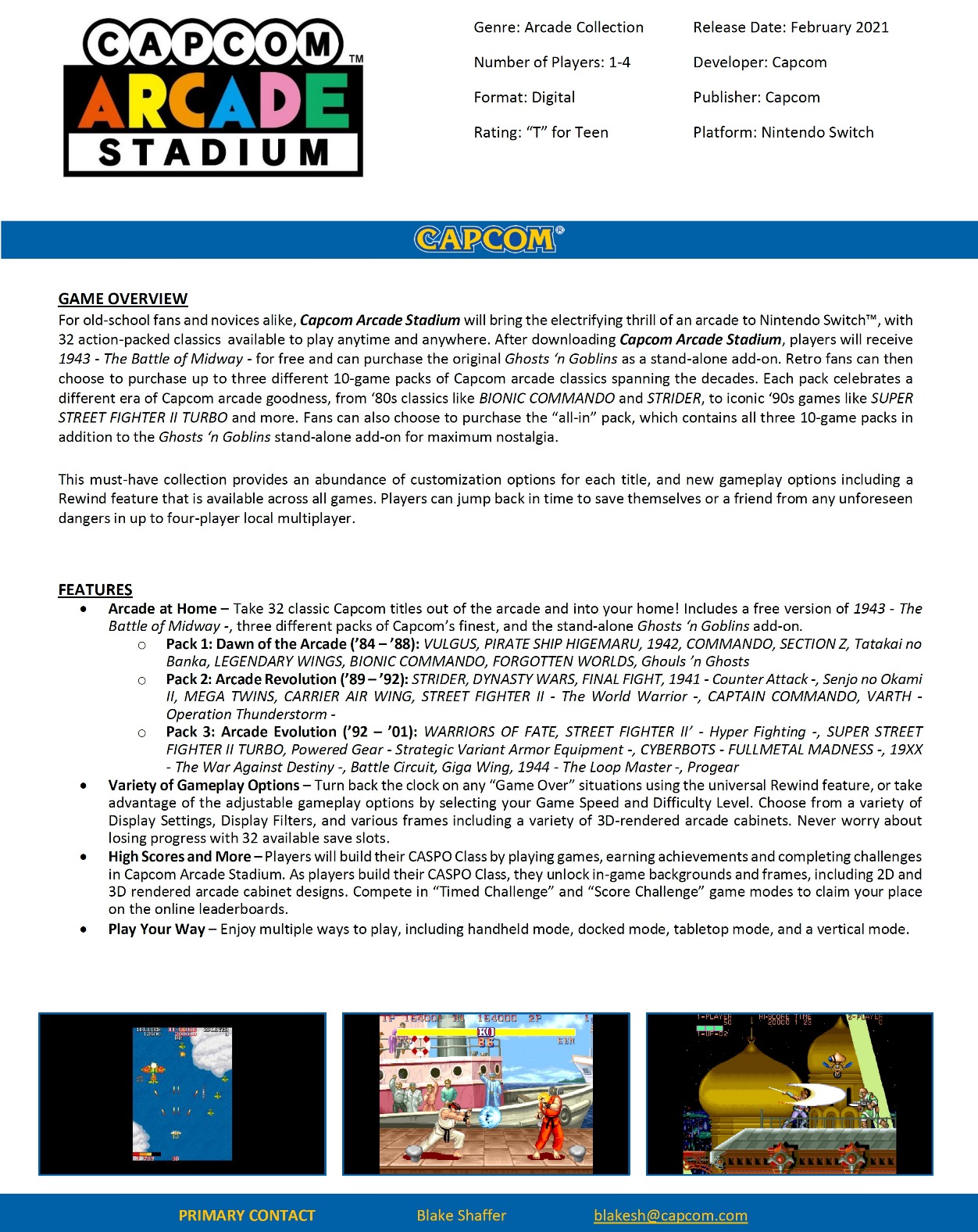 Capcom Arcade Stadium will be available digitally for Switch in February – stay tuned for an exact release date.