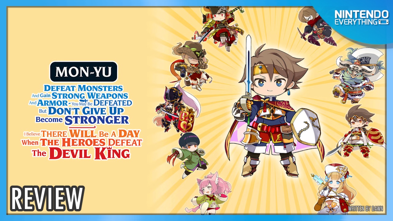 If you’re a fan of anime or light novels, you’re probably familiar with the interesting trend of giving a series an overly long and descriptive sentence for a title. Mon Yu: Defeat Monsters and Gain Strong Weapons and Armor. You May Be Defeated, but Don’t Give Up, Become Stronger. I Believe There Will Be a Day When the Heroes Defeat the Devil King (hereafter referred to simply as just Mon-Yu for obvious reasons) is the latest in a long line of DRPGs from Experience, and has clearly been inspired by this trend in some ways, with its colorful chibi character art style suggesting a light-hearted, easygoing adventure to rid the world of evil. However, beneath this seemingly cheerful aesthetic lies a core of steel that cuts a little too sharply to be appealing.