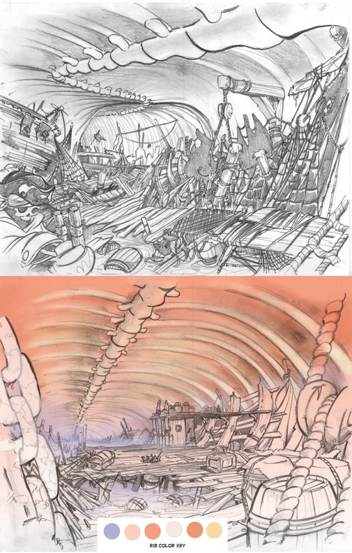 Knight Goofy as well as Wizard Donald originally featured some different costumes. Art of the early designs are included above. There’s also a sketch showing the Monstro level, followed by its final design.