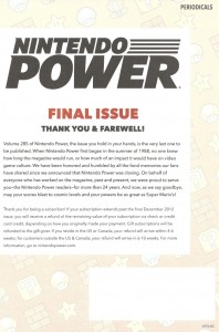 Sadly, Nintendo Power is gone. The December 2012 issue – yep, the last one – was sent out to subscribers and is on newsstands now.