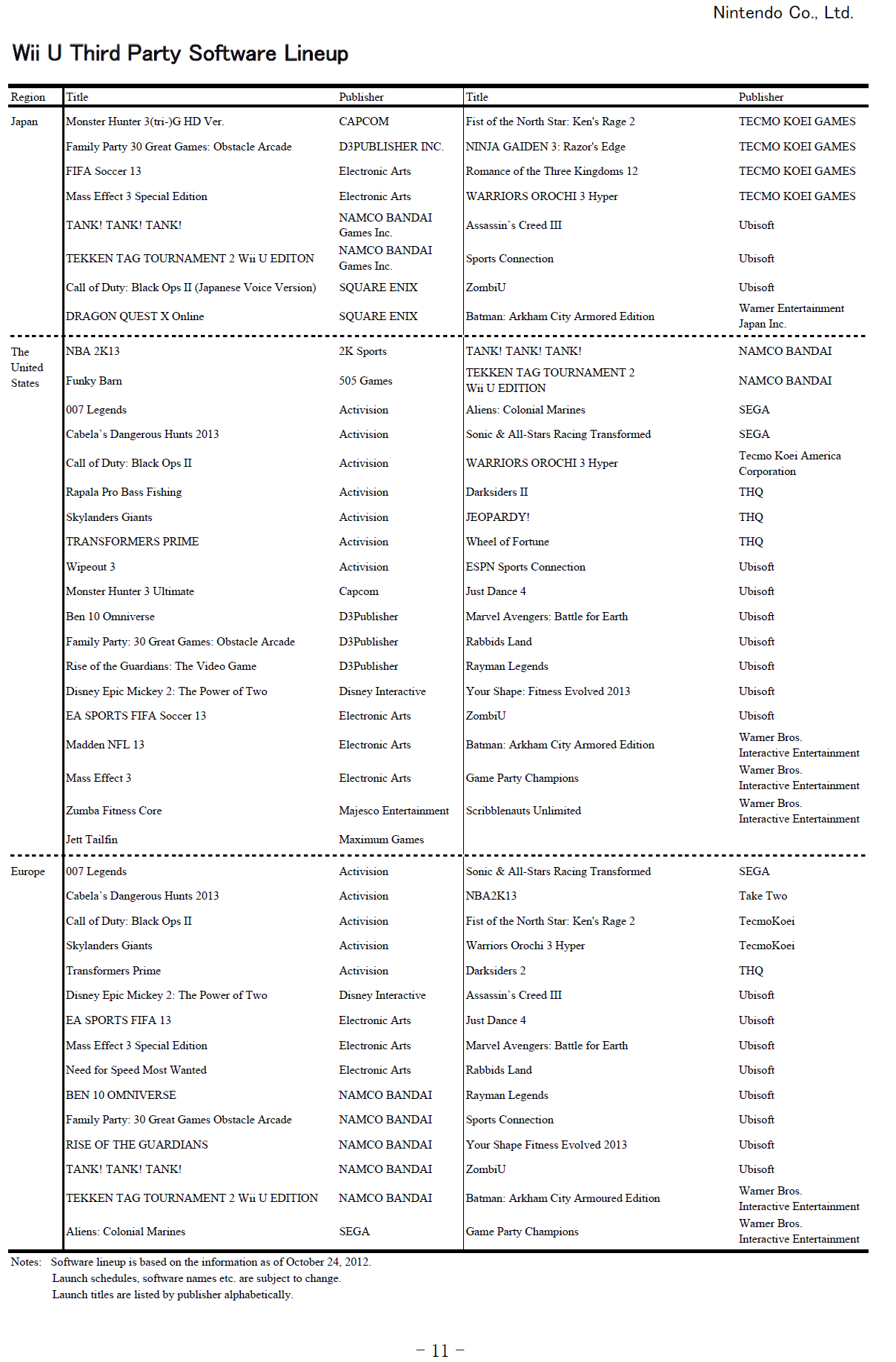 – Anticipating that the mix of third-party games for Wii U will be high initially which contrasts with the Wii