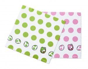 The cloths measure 16cm x 16cm. Nintendo suggests using the cloths to clean the 3DS/DS screens, or maybe even to wipe a pair of glasses.